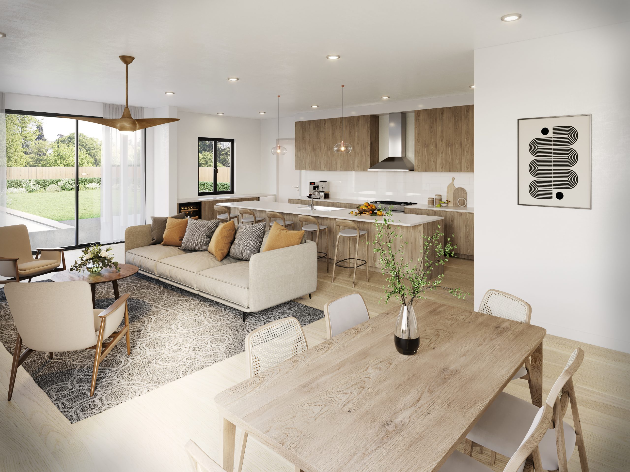 3D Interior Rendering _ Scandinavian Open-Plan Kitchen & Dining / Copenhagen, Denmark