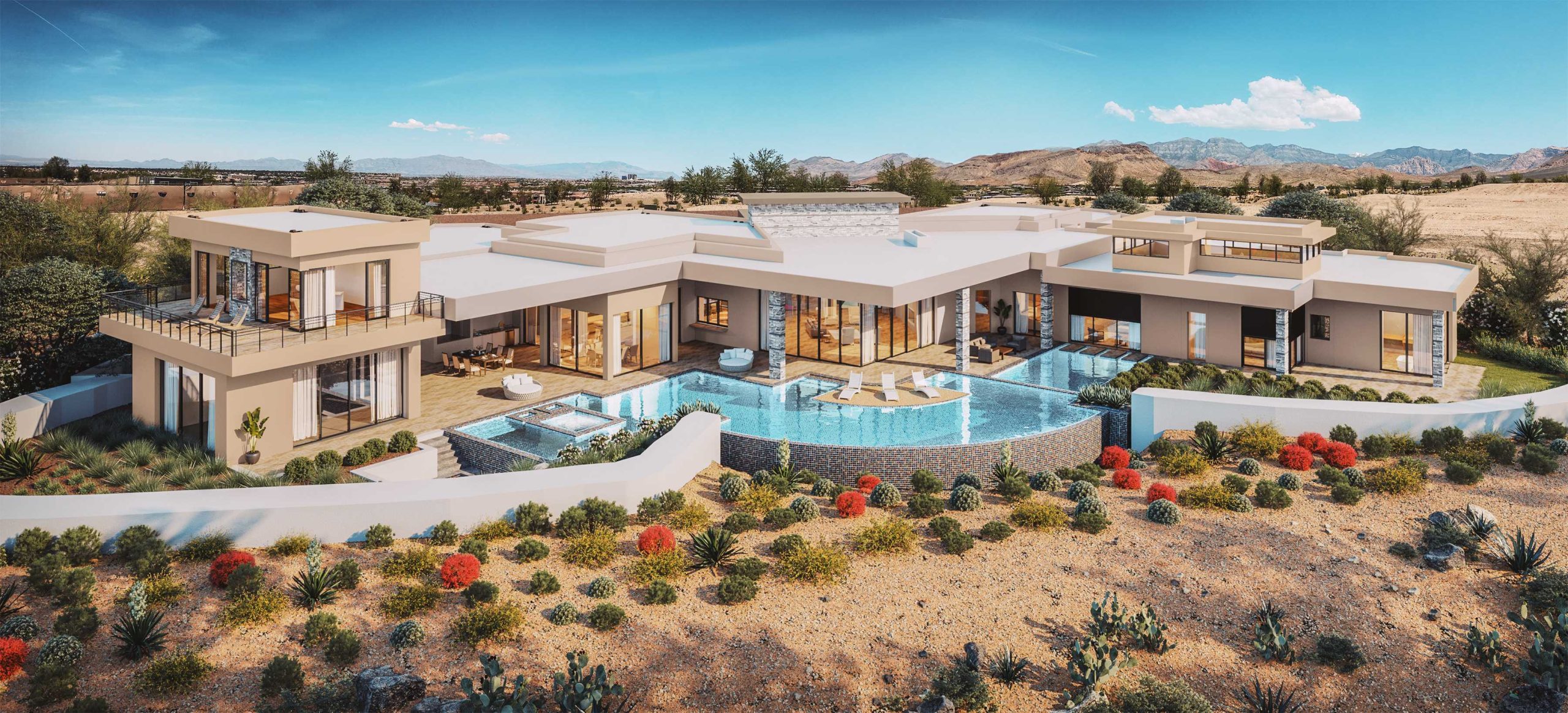 3D Exterior Rendering – Luxury Desert Contemporary Villa / Palm Springs, California, USA